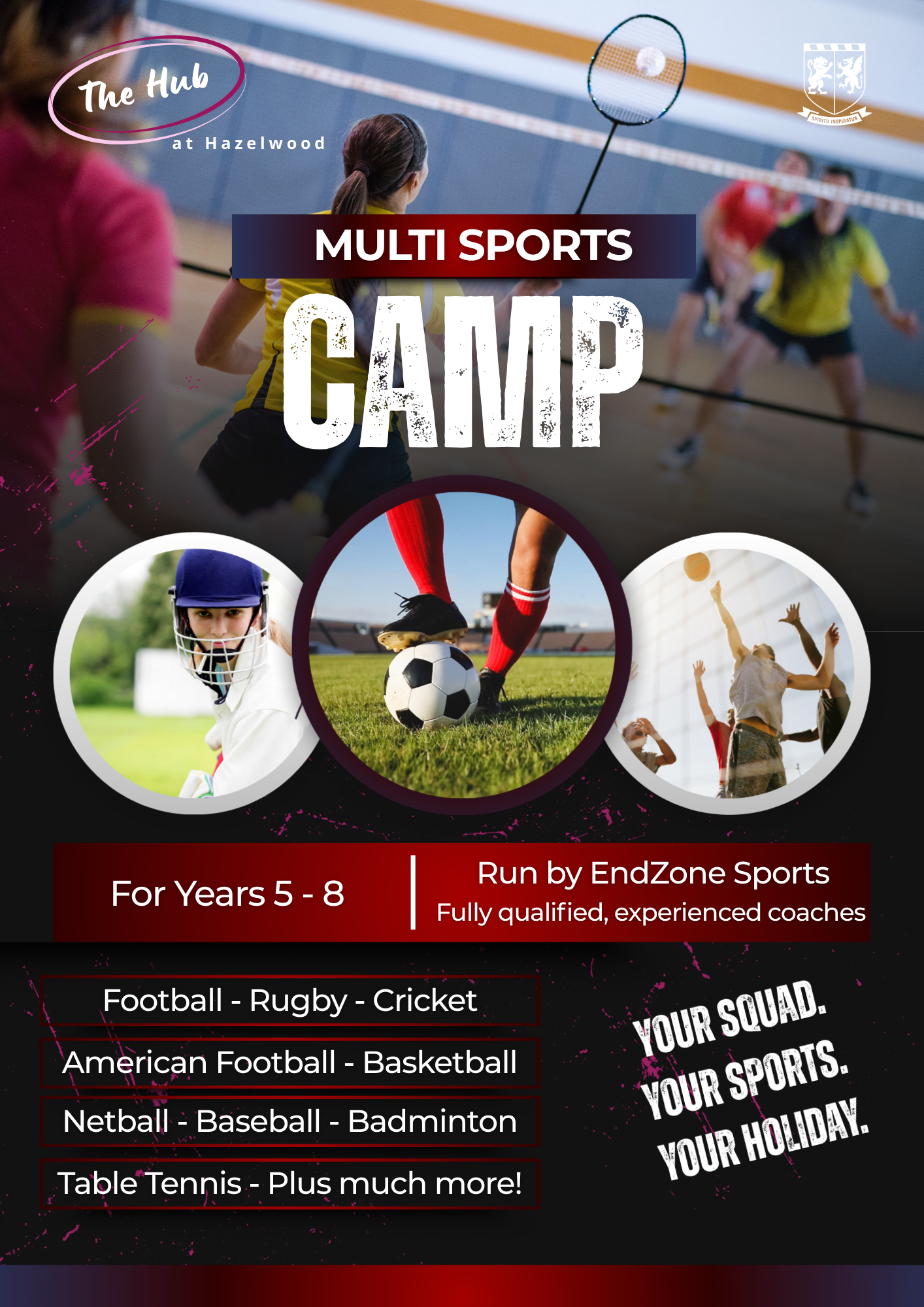 Children have a wide range of activities to take part in, including football, rugby, cricket, American Football, basketball, netball, baseball, badminton, table tennis and much more!
